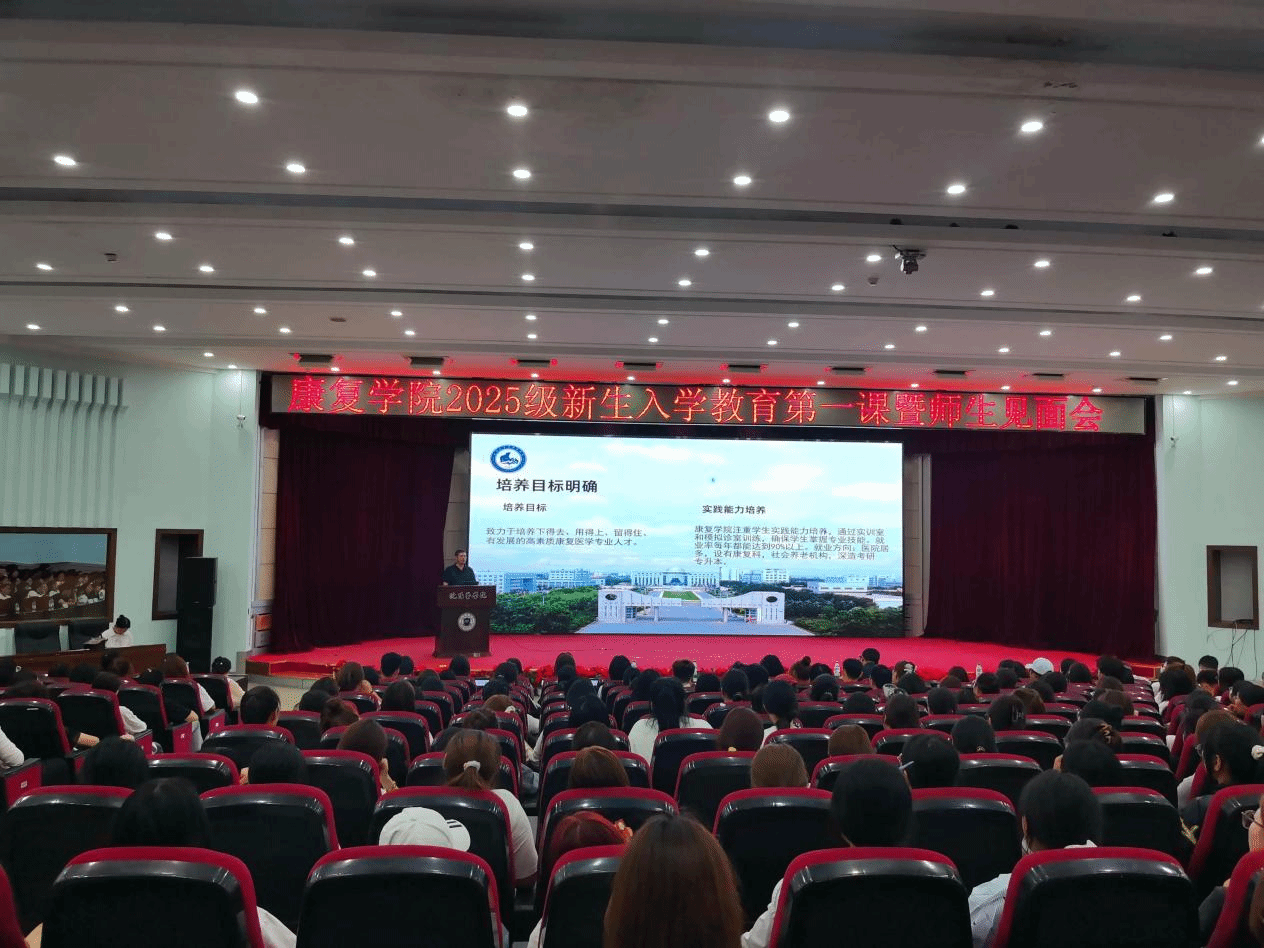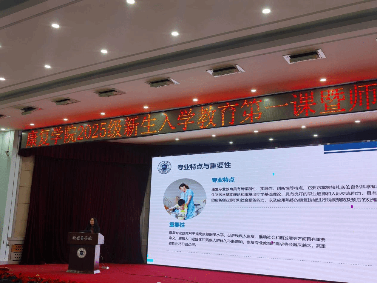 副院长杜立英聚焦专业培养,为新生全面解读康复学科发展前景与学院专业特色。她指出,随着社会健康需求不断提升,康复治疗在疾病恢复、功能改善等领域的作用愈发关键,行业对专业康复人才的需求持续增长;同时,系统介绍学院在康复专业建设中的优势,包括先进教学设备、优质师资团队、丰富实践资源等,帮助新生清晰把握专业学习目标与未来发展方向,进一步坚定深耕康复领域的决心。