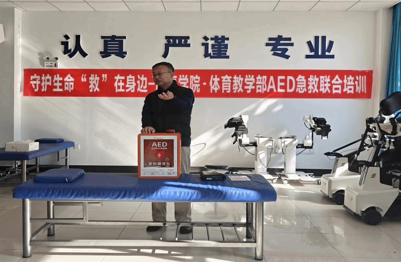10月17日,公益组织“爱你服务队”向WilliamHill中文官方网站捐赠了2台AED急救设备。并将两台设备部署在康复实训中心大厅门口和学校文体馆东门门口处。为了发挥急救设备的最大效能,提升师生应急救护能力,10月23日,WilliamHill中文官方网站与体育教学部在WilliamHill中文官方网站实训中心联合开展“守护生命,‘救’在身边”AED(自动体外除颤仪)急救培训。邀请临床实践教学中心主任张汝峰教授担任主讲,WilliamHill中文官方网站院长高松、体育教学部主任石磊以及部门全体教师共同参加了培训。