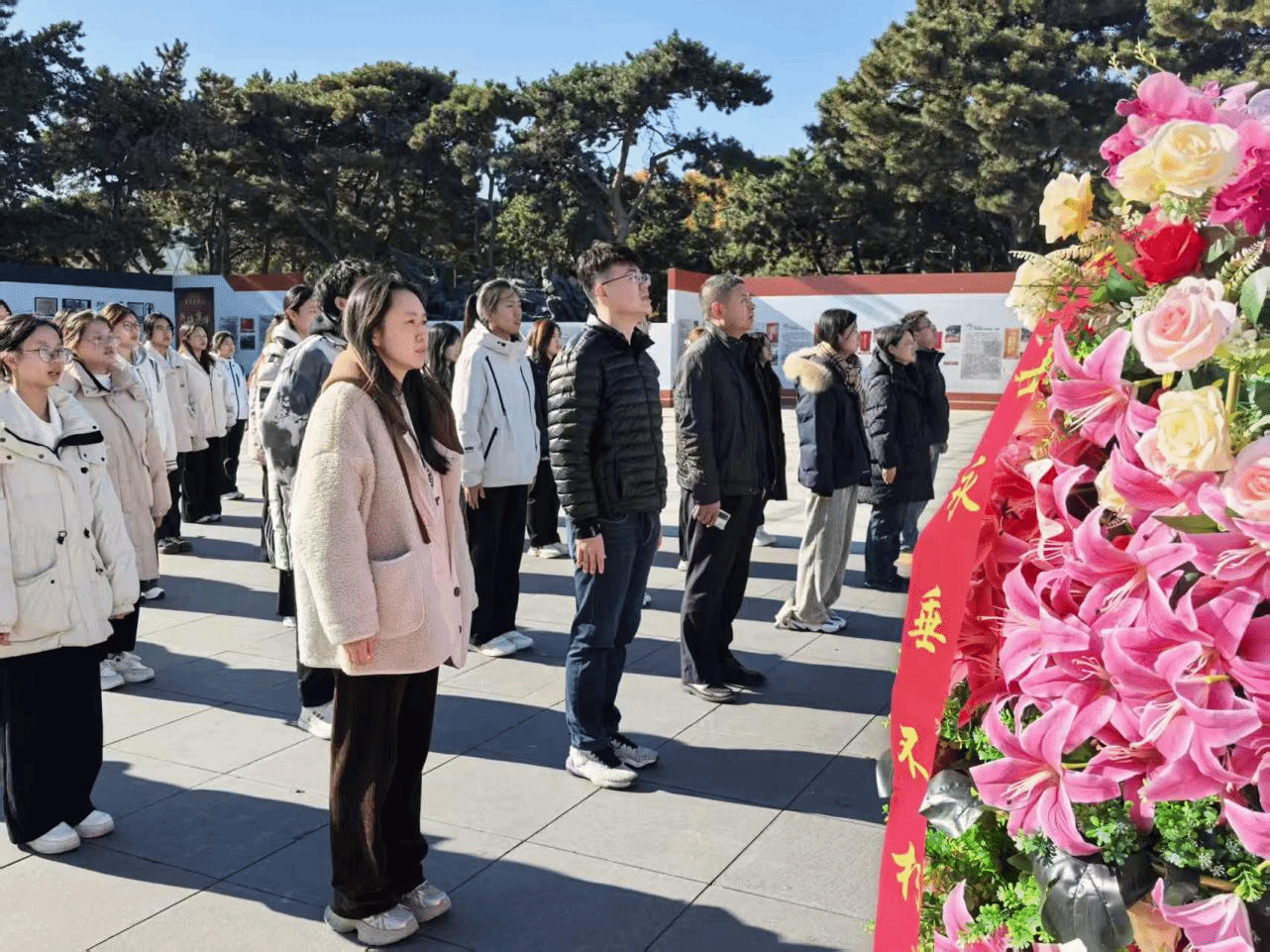 在庄重的气氛中,全体党员向烈士敬献花圈。花圈寄托着我们对革命先烈的无限哀思与崇高敬意,那鲜艳的花朵,象征着先烈们不朽的精神,永远绽放在我们心中。