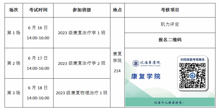 亲爱的同学们,为进一步提升康复专业技能水平,促进康复理论与实践的紧密结合,为今后的职业发展奠定坚实基础,拟进行康复技能通关考核,考核通过后方可进行期末结业考试,通关考核成绩将按照10%比例计入期末综合成绩。