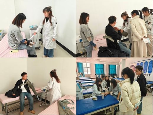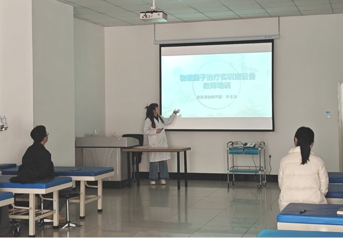 许玉冰老师结合自身丰富的临床与教学经验,重点围绕 “仪器临床应用”“仪器设备演示”“医患沟通人文关怀” 三大模块展开分享。通过脑卒中康复、骨骼肌肉损伤治疗等典型案例剖析,清晰阐释不同物理因子技术在神经康复、骨关节康复等领域的应用指征与教学转化方法;实操环节中,她针对设备操作规范、安全注意事项及教学演示技巧进行现场示范,尤其是冲击波疗法引起了教师们的体验兴趣,现场互动氛围浓厚。这种培训模式,既夯实了教师对物理因子仪器临床应用的认知,更有效提升了其将设备操作转化为教学内容的能力。